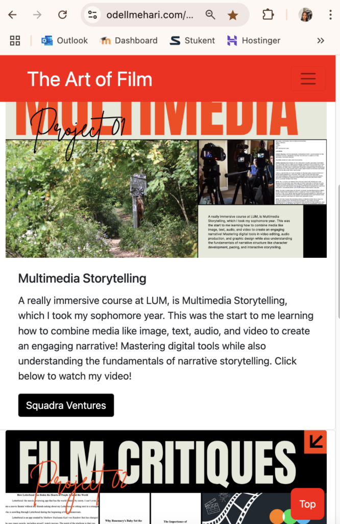 This website is my current online portfolio, I will be using and updating post-grad. My hope is that future employers and companies can see my growth in web design as they compare the past couple of webpages I made versus the final one I own and use now!